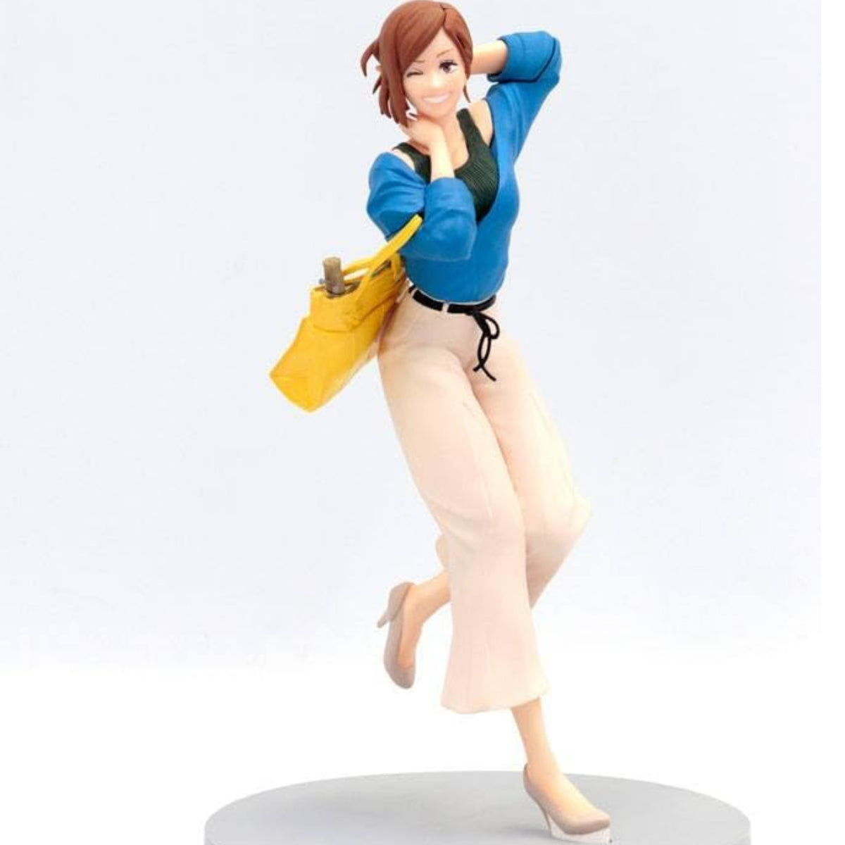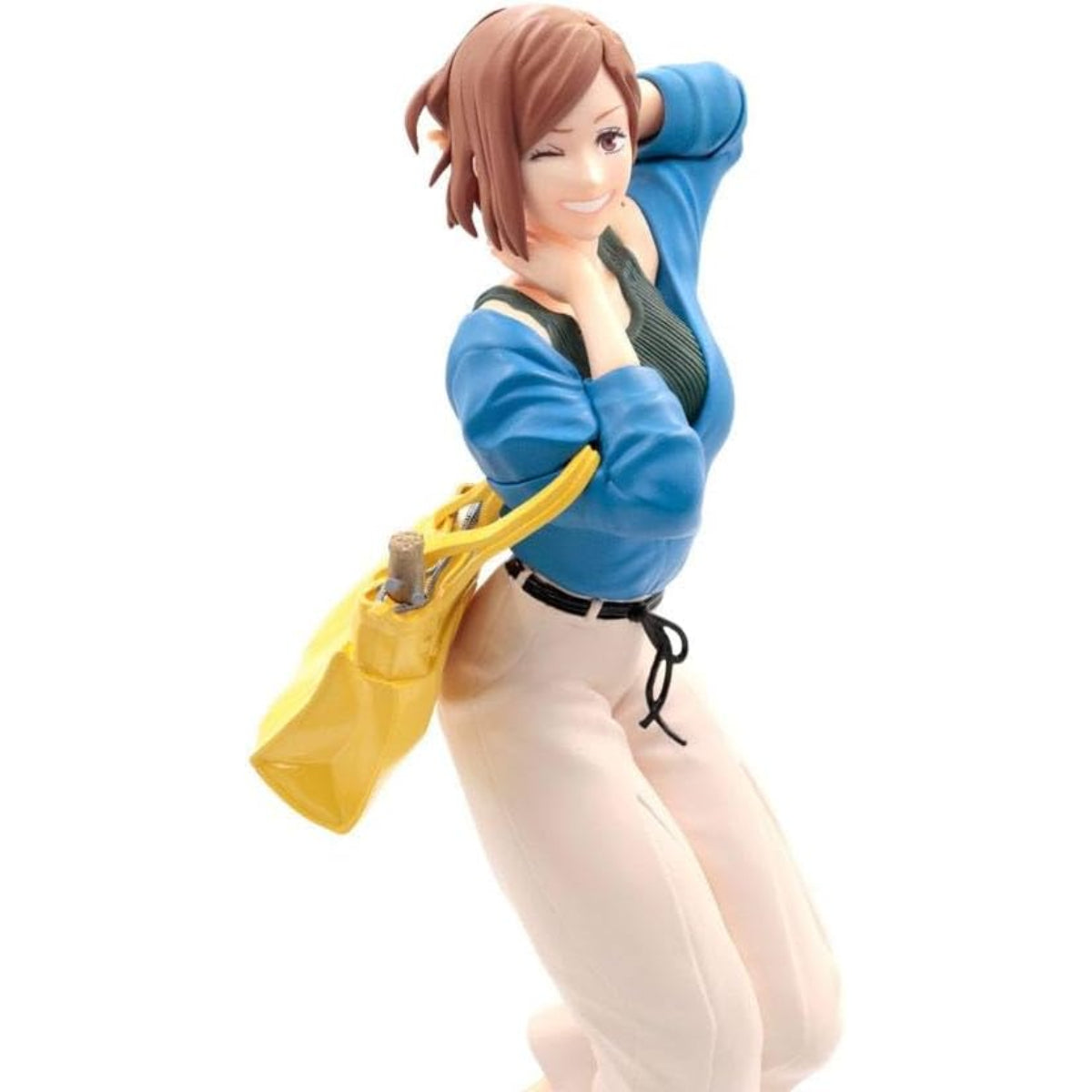 The figure depicts Nobara in a casual outfit during her downtime, complete with a shopping bag and her signature Straw Doll Cursed Tool peeking out.